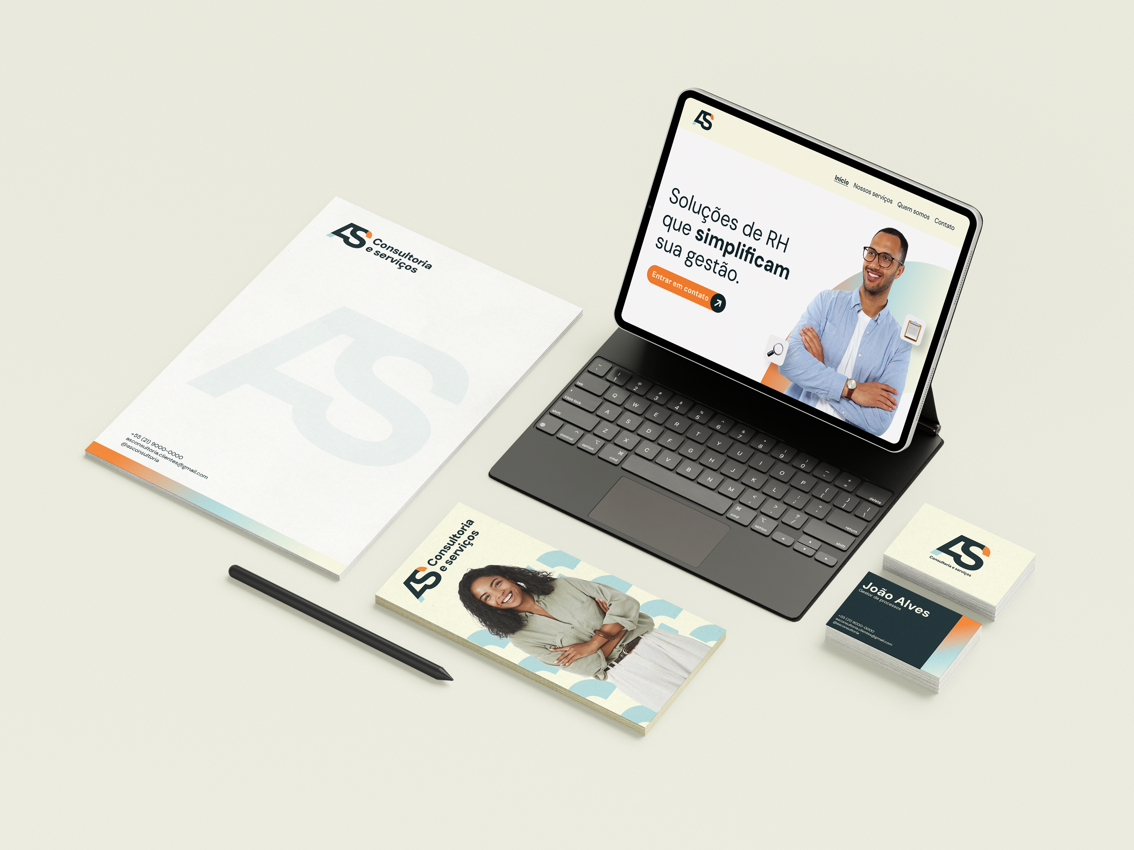 A identidade visual foi desenvolvida para transmitir profissionalismo, confiança e organização, valores essenciais no setor de recursos humanos. A construção gráfica utiliza formas sólidas, tipografia moderna e uma paleta equilibrada, reforçando a ideia de conexão entre empresas e talentos, além de comunicar credibilidade e eficiência nos serviços prestados.