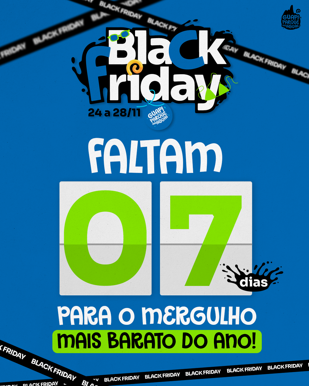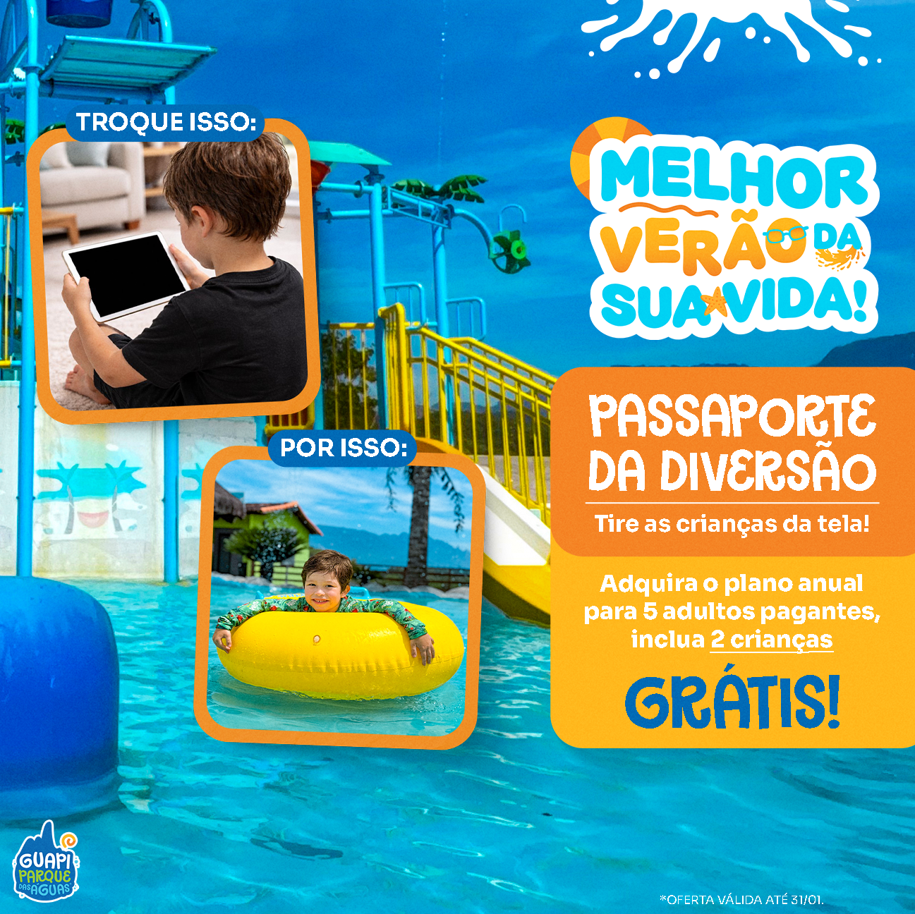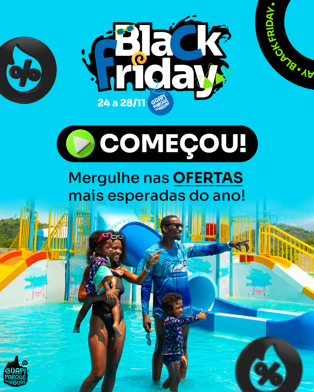 Guapi Parque das Águas is one of the largest water parks in Rio de Janeiro state, spanning 50,000 square meters. In this project, I adapted the brand’s visual identity for its digital channels, ensuring a fun, colorful, and dynamic language across multiple formats.