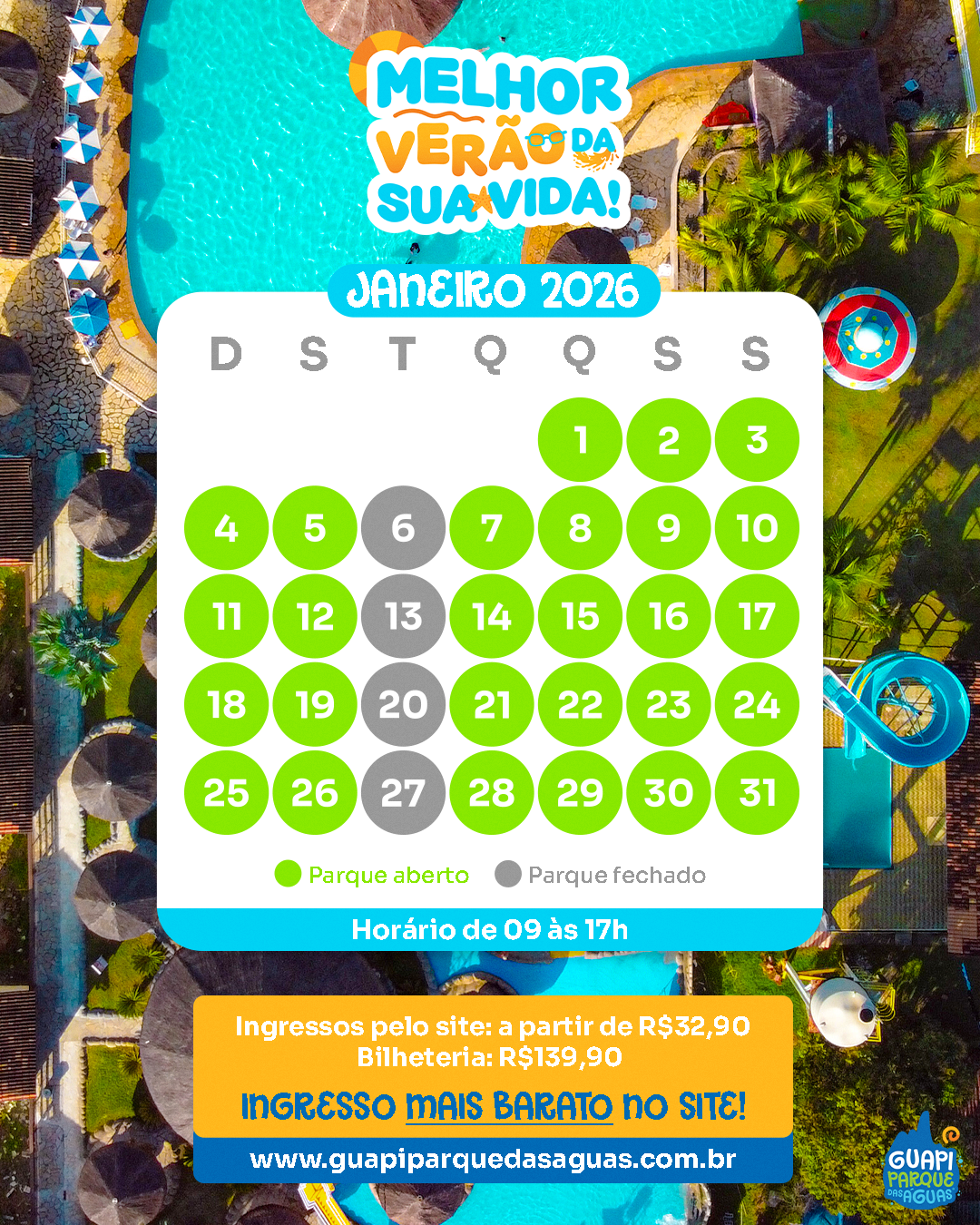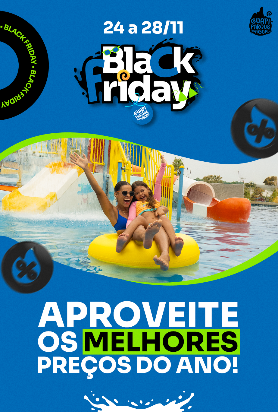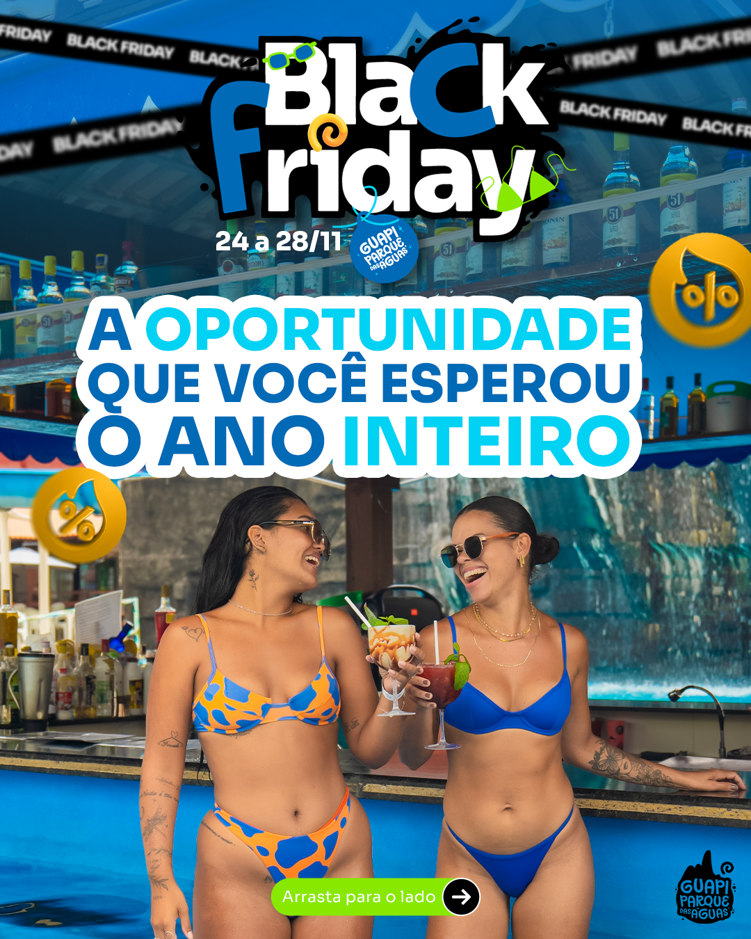 Guapi Parque das Águas is one of the largest water parks in Rio de Janeiro state, spanning 50,000 square meters. In this project, I adapted the brand’s visual identity for its digital channels, ensuring a fun, colorful, and dynamic language across multiple formats.
